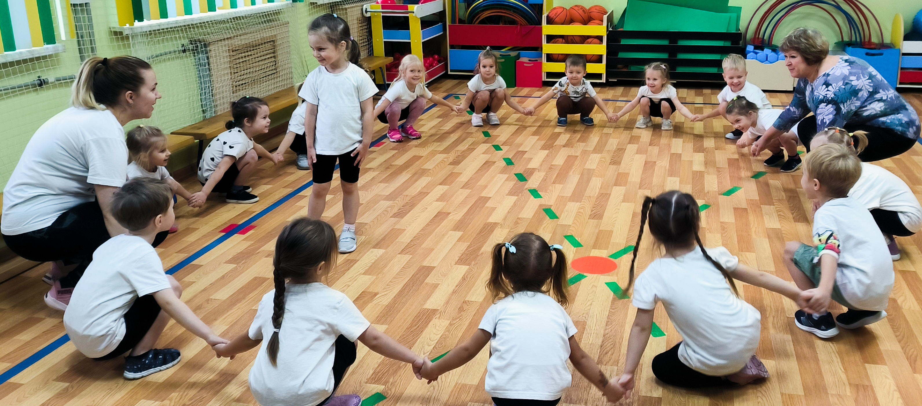 Педагоги постарались сделать наш досуг максимально разнообразным и увлекательным, включив в него тематические игры и эстафеты, такие как "Собери овощи", "Поймай листик", "Попрыгушки", а также подвижные игры "Солнышко и дождик", "Птички в гнёздышках", "Мышеловка".