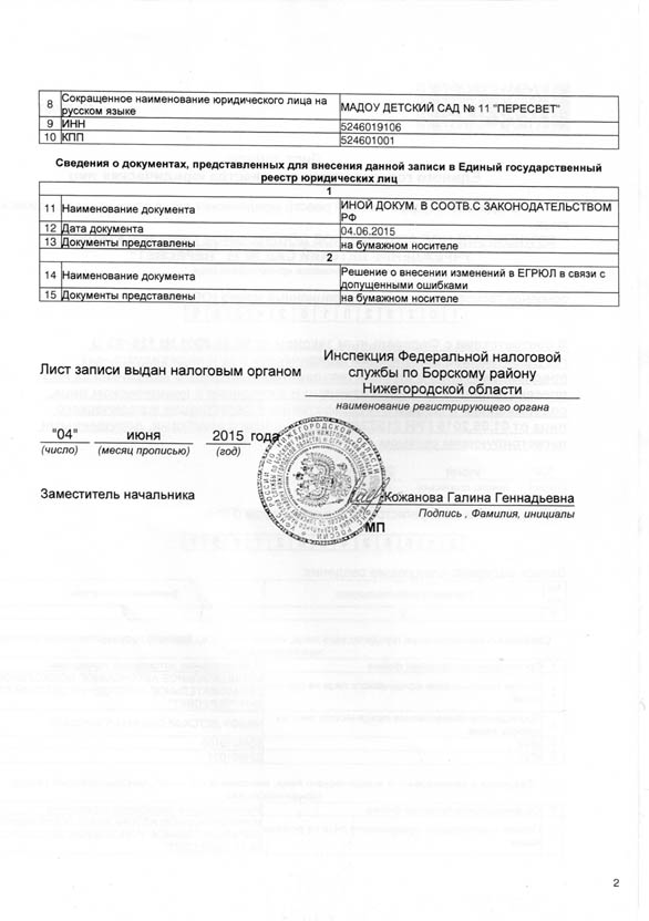 - Лист записи ЕГРЮЛ (2 стр)